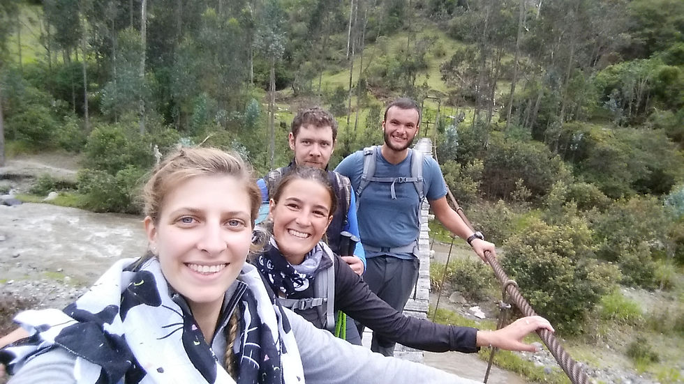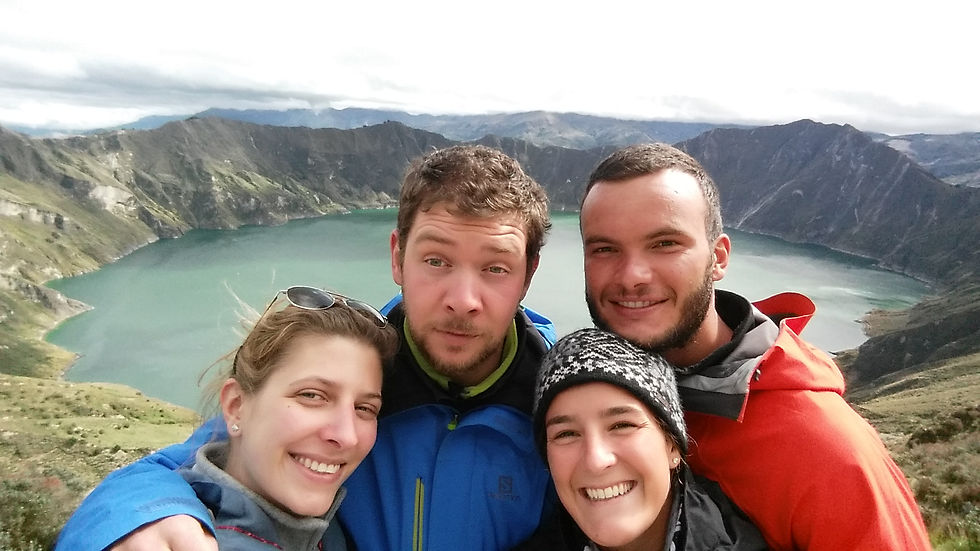 Once back in Quito, direction Latacunga to join the beginning of the Quilotoa loop. As we have a little time before going to Isinlivi (the beginning of the trail), we visit the market of Latacunga which is still less impressive than that of Otavalo even if one finds there everything (and nothing too) . We then take the bus to Isinlivi at the end of the morning. The trip is really impressive as the bus runs on an unpaved road in 3’000 and 4’000m sometimes a few centimeters from the precipice. The driver really has no right to make mistakes. As soon as we arrived in Isinlivi, we really felt like we were in another world. The faces are more "typical" and we feel more curiosity on the part of the premises. After finding a map of our walk in an inn, we are off for our first day of hiking. About 4 hours of walking in the middle of the valleys, fields, farms and rivers. We are all surprised to see so much greenery and fields of culture at such an altitude. After a last climb of more than 600m of unevenness, we arrive at the small village of Chugchilan where a good shower and a hot meal await us. We take advantage of the late evening to play billiards, table football and ping pong and then we all go to bed in order to regain strength for the difficult day ahead.