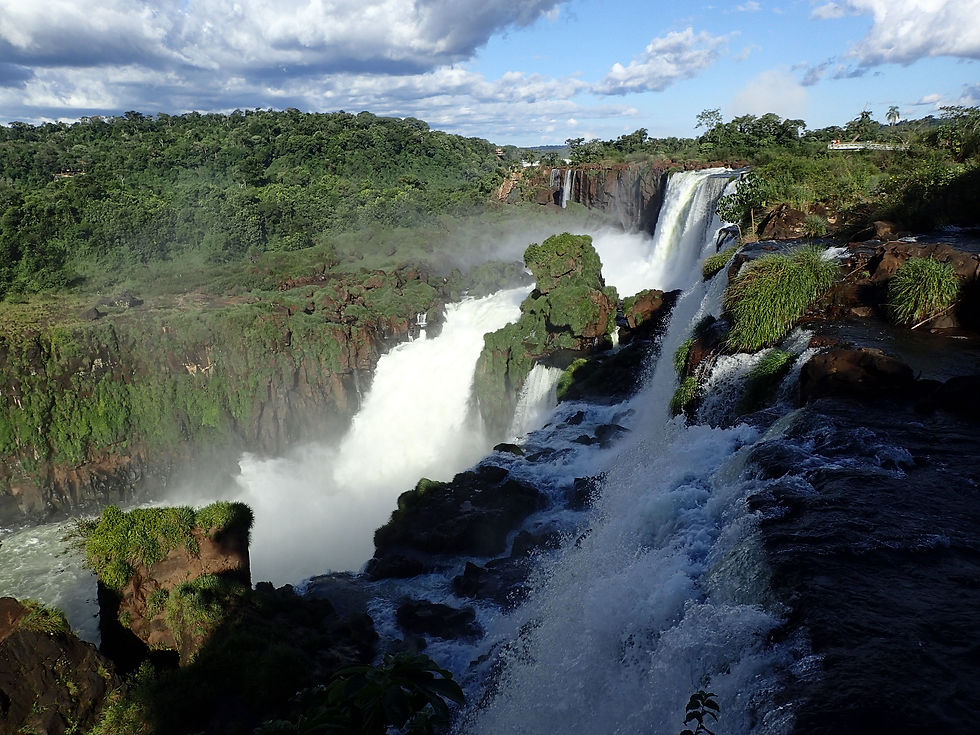 Ce jeudi c’est sous un grand soleil que l’on se réveille et c’est tant mieux parce qu’aujourd’hui on visite le parc d’Iguazù et ses chutes célébrissimes. On se rend au terminal de bus mais une fois là-bas on apprend la nouvelle du jour : GREVE NATIONALE ! Ce qui signifie qu’aujourd’hui il n’y a aucun bus qui se rend au parc et qu’apparemment il y a un barrage sur la route à 5 km de la ville qui empêche les taxis de rejoindre l’entrée du parc. On décide tout de même de tenter notre chance à 5 dans un taxi 4 places et il n’y a aucun barrage ! On arrive sans encombre au parc et on est ravi de pouvoir le visiter. On prend le petit train qui nous mène jusqu’aux premières passerelles. Après un petit kilomètre de marche on atteint le premier point de vue et on en a presque le souffle coupé. C’est MA-GNI-FIQUE ! La grandeur de ces chutes nous saute aux yeux et le débit d’eau est juste hallucinant. On prend une petite pause déjeuner pour nous remettre de nos émotions en compagnie des coaties qui font le spectacle. Ces ratons laveurs sont de véritables chapardeurs. Ils profitent que les visiteurs aient un peu le nez en l’air pour venir chiper les victuailles laissés sur la table. Parfois à la limite de l’agressivité, il faut faire attention de ne pas se faire griffer ou mordre. L’après-midi, on continue notre petit tour par des points de vue tous plus impressionnants les uns que les autres. On prend même un petit bateau pour se rendre sur l’ile qui fait face aux chutes. Les embruns nous rafraichissent et cela fait du bien car le soleil qui brille depuis le début de la journée nous apporte une chaleur étouffante. On termine la journée par un autre circuit de points de vue malgré des jambes un peu lourdes après les 12 km de la journée. On rentre prendre une bonne douche pour ensuite diner dans un restaurant plein de promesses mais qui c’est finalement avéré décevant avec sa parilla contenant trop d’abats et son tiramisu congelé… Cela ne ternira pas cette fabuleuse journée.