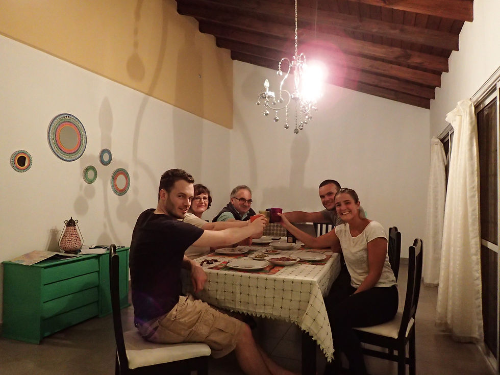 We get up early to enjoy a first breakfast all together. As the weather is not very good, we stay home to organize the journey of the next days in the Quebrada de Humahuaca. We decided to go out in the early afternoon to make a small tour in the city even if the rain did not really stop. We love the central square with its historic buildings and its very high palm trees (which are a little out of context today with rain). We walk in the pedestrian streets but most of the shops are closed between 1 and 5pm (Spanish lifestyle). We go back to the apartment few hours after to get a snack and then Guillaume, Thomas and I went out again to pick up the rental car for the next four days. It was not easy but we manage to get the 4x4 we wanted: a red Ford Ranger 3.2l that will be very useful to us on the dirt roads. We ended the evening in Jura style with a hot “mont d’or” bring by Thomas's parents. We enjoy each fork, a delight!
