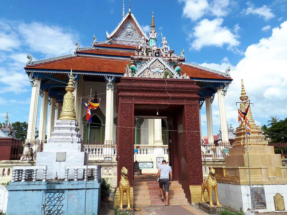 6:40, our pickup is already there to take us to our bus to Battambang. The age of the buses did not miss us from South America and there we hit the jackpot. It does not bother us so much as it only takes 4 hours. For lack of time, we did not have breakfast then, at the break of 10h, we set our sights on 3 mini bananas that make us wait until arrival. On the descent of the bus, it is almost a scene worthy of a comic film that is played: a dozen of tuk-tuk drivers literally fall on us and leave us little space to breathe. They all want to take us to our hostel for $ 0.50, paranormal I tell you. We leave with one of them who takes us to town and put our bags at the inn. It is already 1pm and we are terribly hungry. We go in search of a restaurant that we find after 3 attempts and so many failures. The food is delicious, we'll get used to it almost since we arrived in Cambodia. The afternoon offers us a sun murderer, the air is stifling. We do all the same the tour of the city but it is rather quickly done because apart from the station, the museum closed and two temples, there is not much ... We take advantage then to stroll to the hostel , Relaxing moment: reading, writing and cuddling to cats babies. The evening falls relatively fast and we find a nice restaurant to close this day.